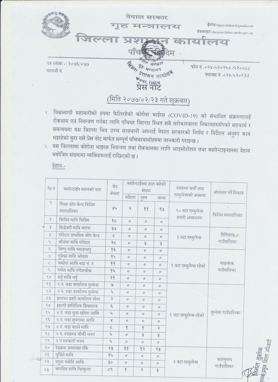 प्रेस नोट, मिति २०७७।०२।२३ गते शुक्रबार