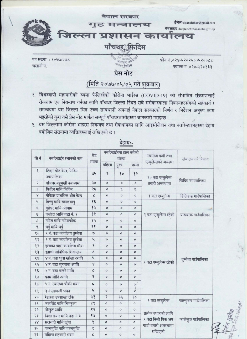 प्रेस नोट, मिति २०७७।०५।०५ गते शुक्रबार