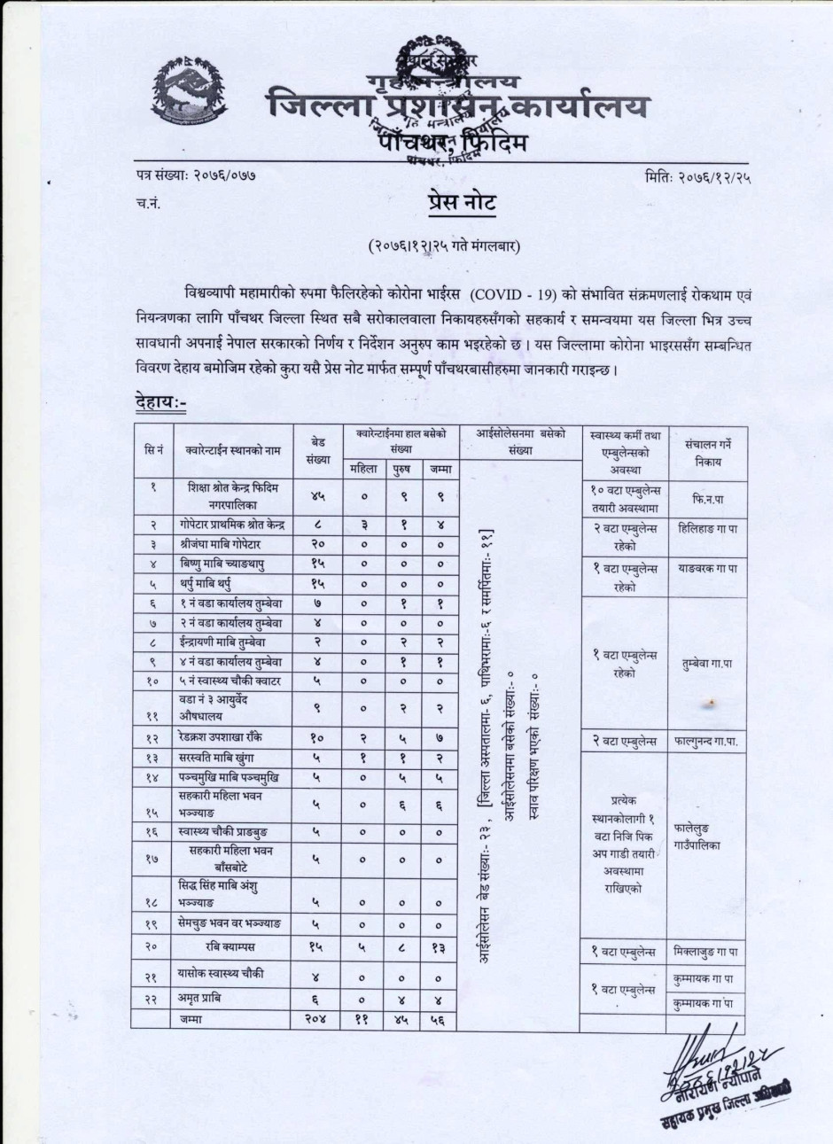 प्रेस नोट, मिति २०७७।०८।२५ बिहिबार