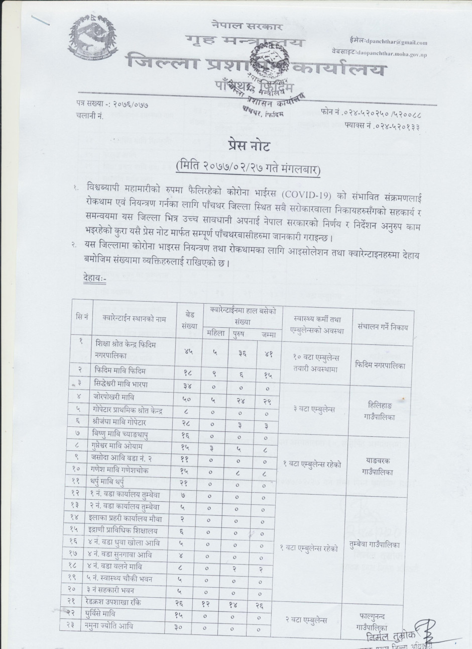 प्रेस नोट, मिति २०७७।०२।२७ मंगलबार