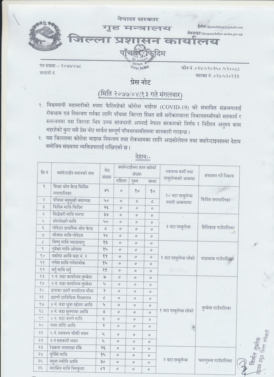 प्रेस नोट, मिति २०७७।०४।१३ मंगलबार