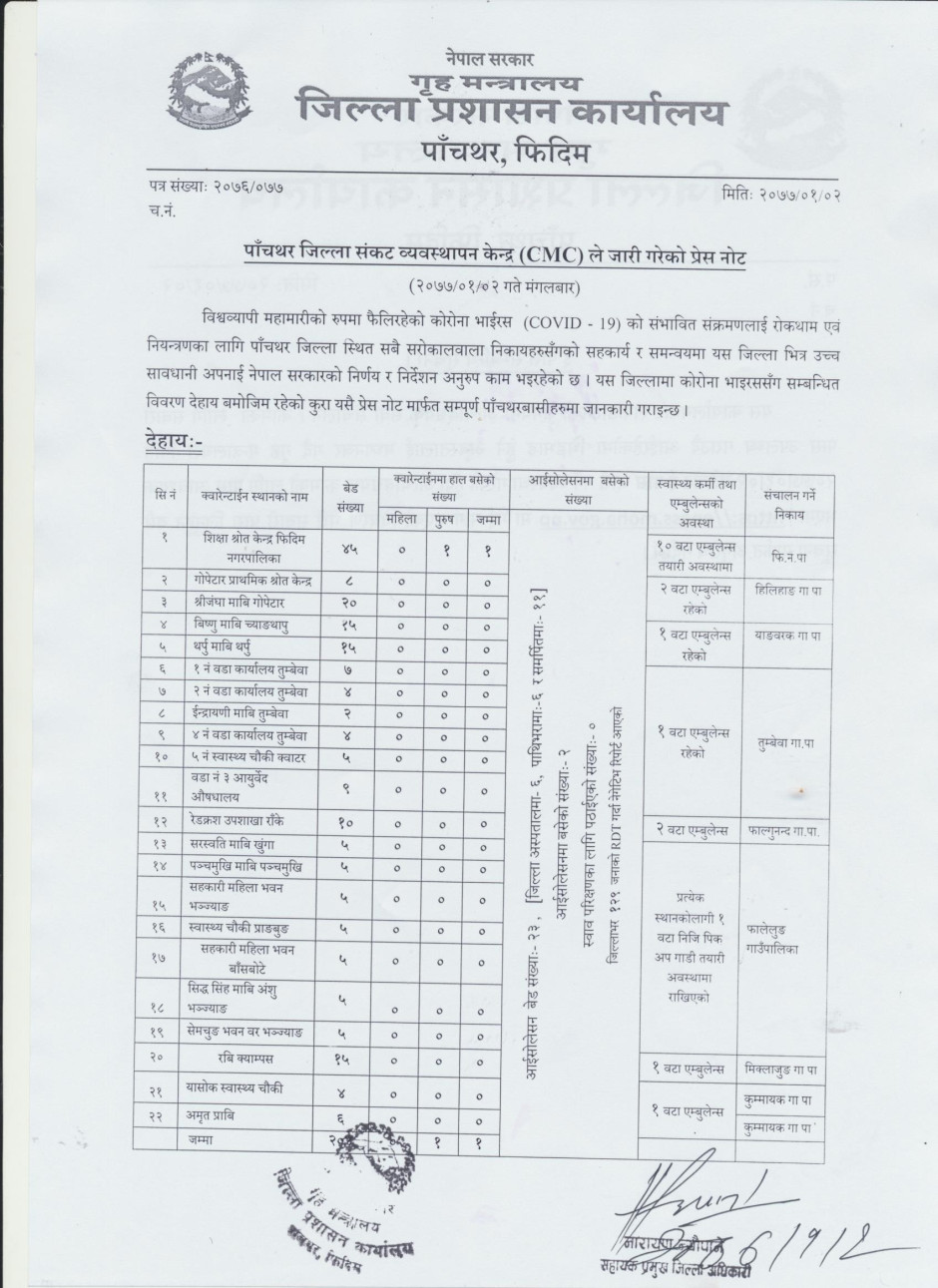 अर्धवार्षिक बुलेटिन २०७६, जिल्ला प्रशासन कार्यालय, पाँचथर