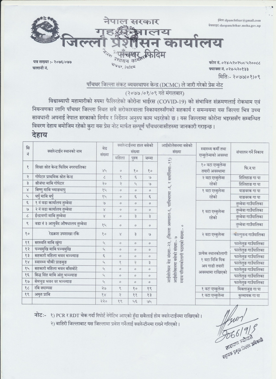 प्रेस नोट, मिति २०७७।०१।०९ मंगलबार