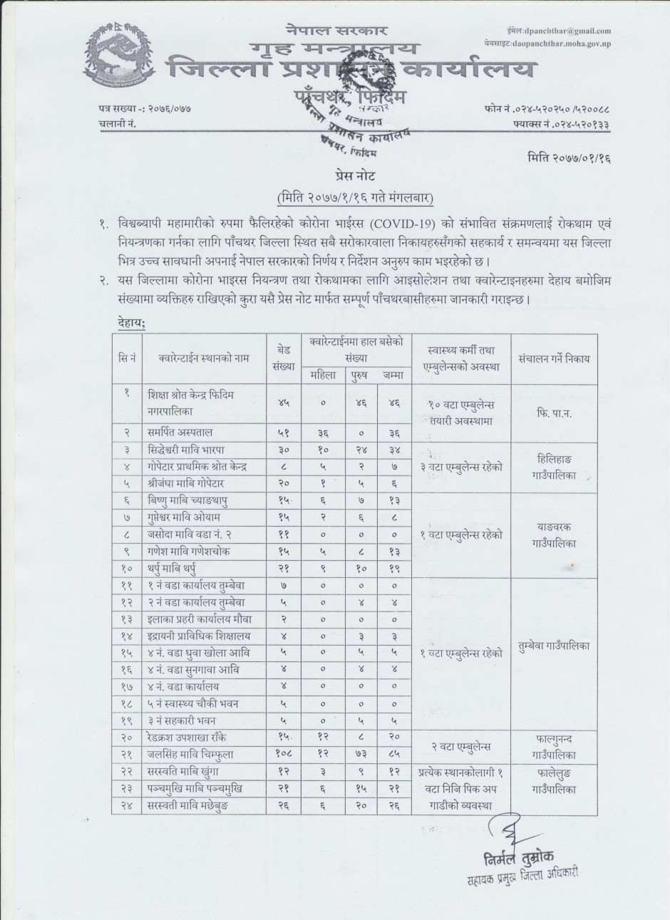 प्रेस नोट, मिति २०७७।०१।१६ मंगलबार