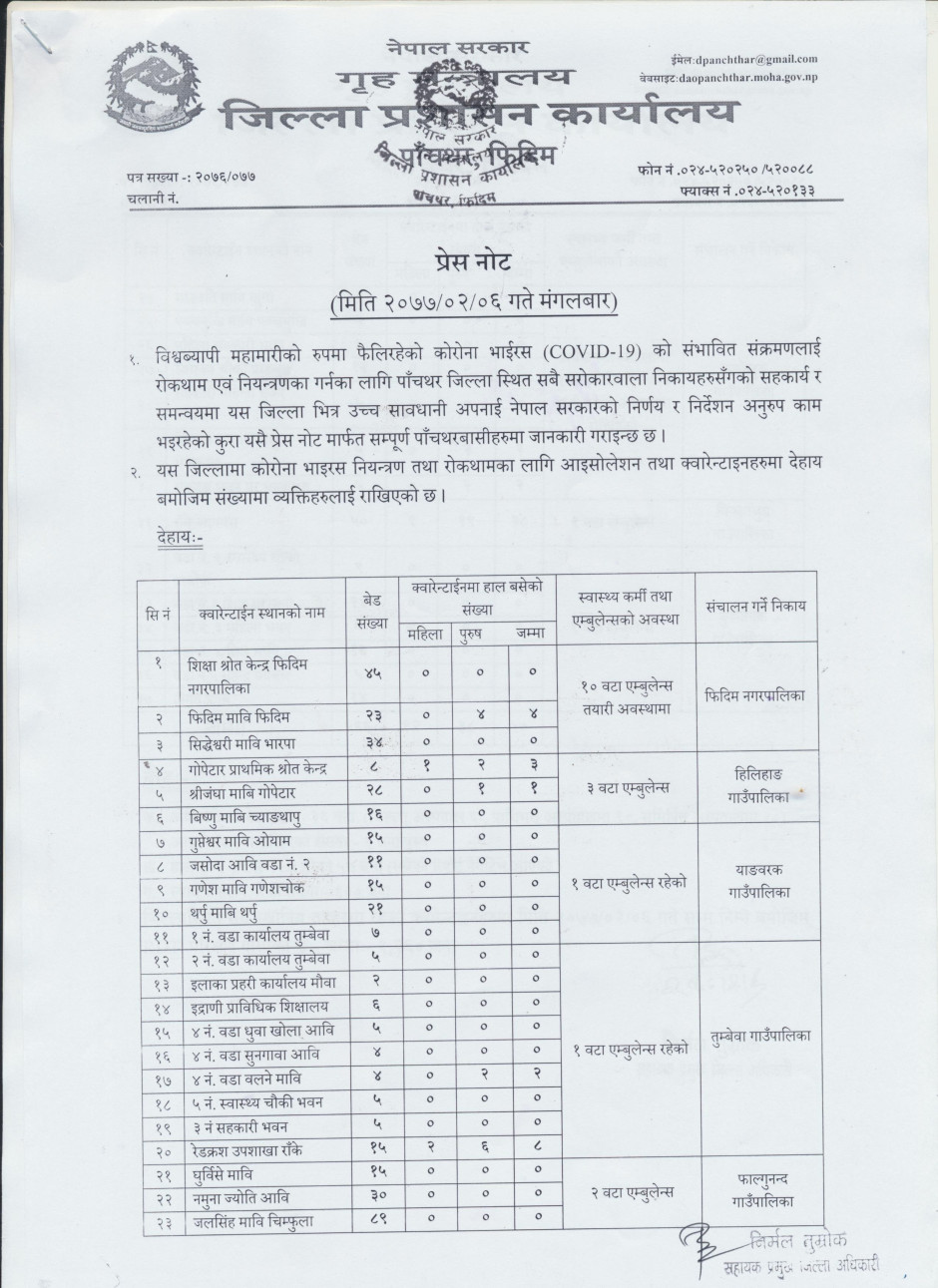 प्रेस नोट, मिति २०७७।०२।०६ मंगलबार