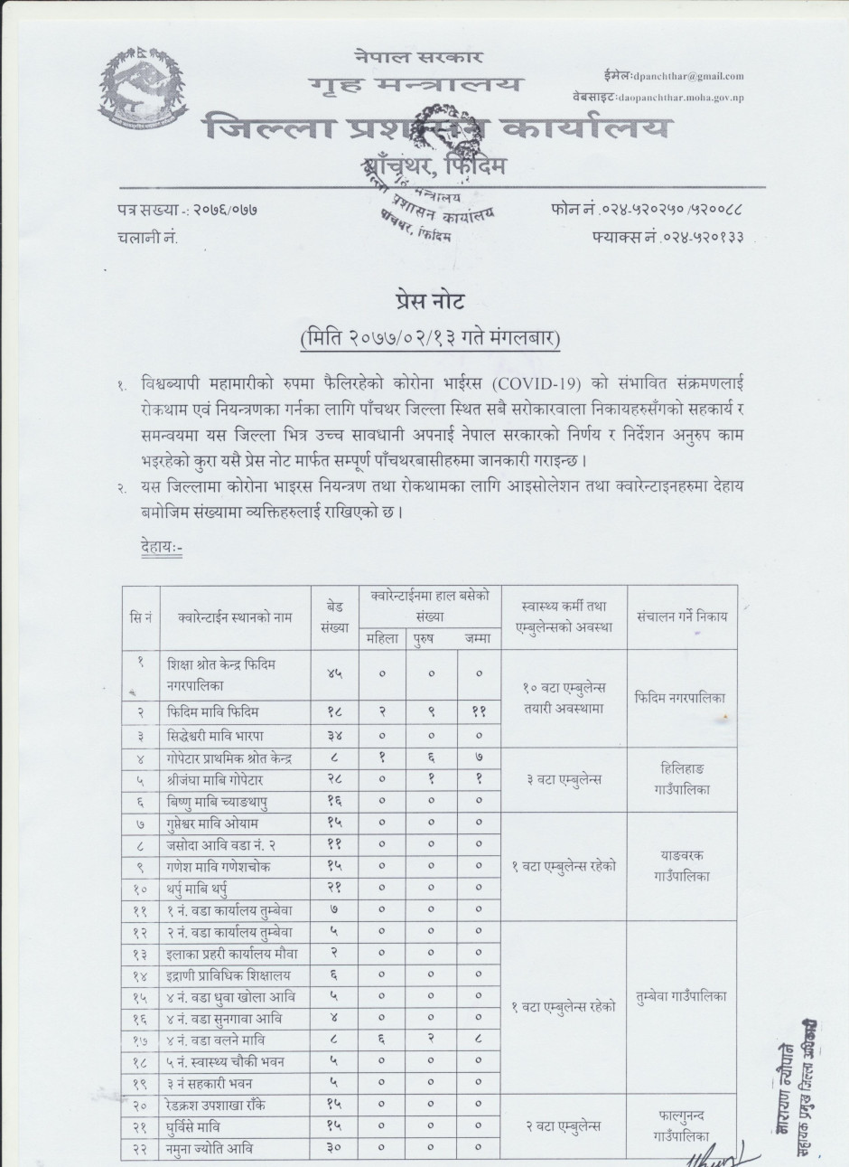 प्रेस नोट, मिति २०७७।०२।१३ मंगलबार
