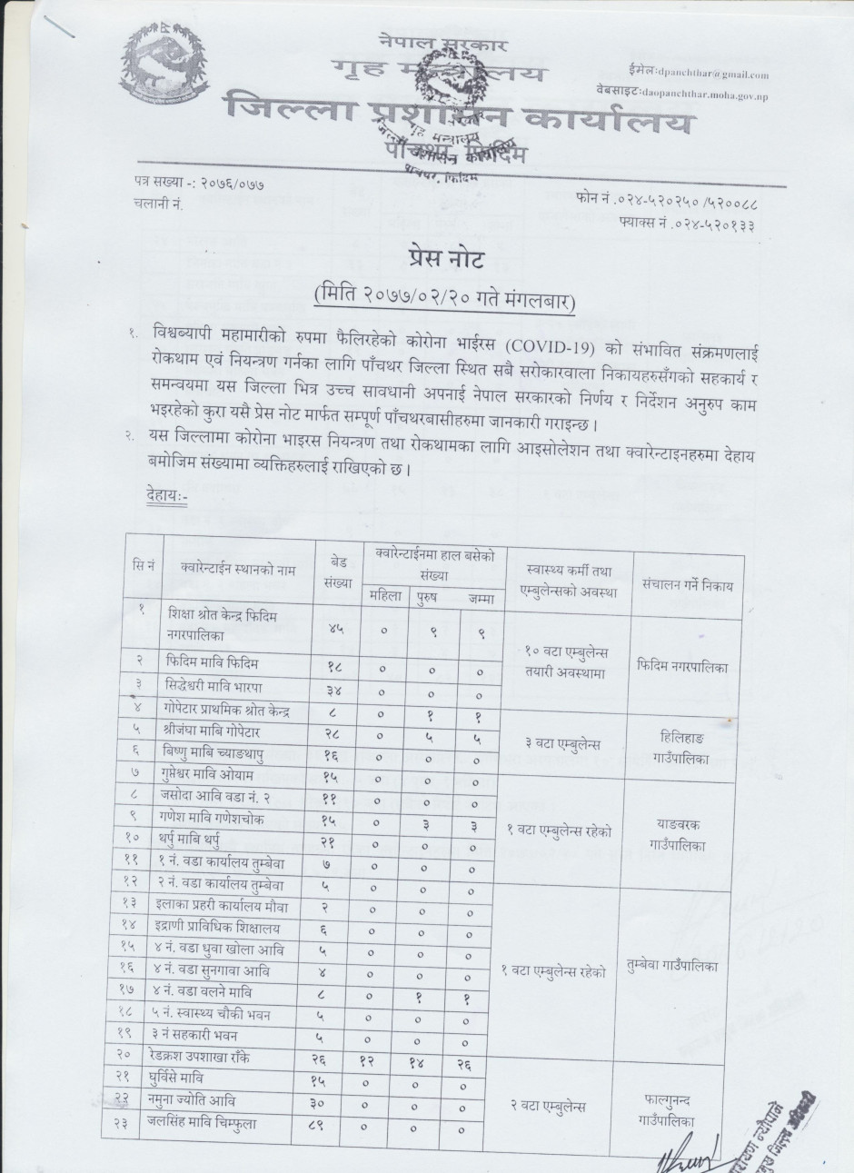 प्रेस नोट, मिति २०७७।०२।२० मंगलबार