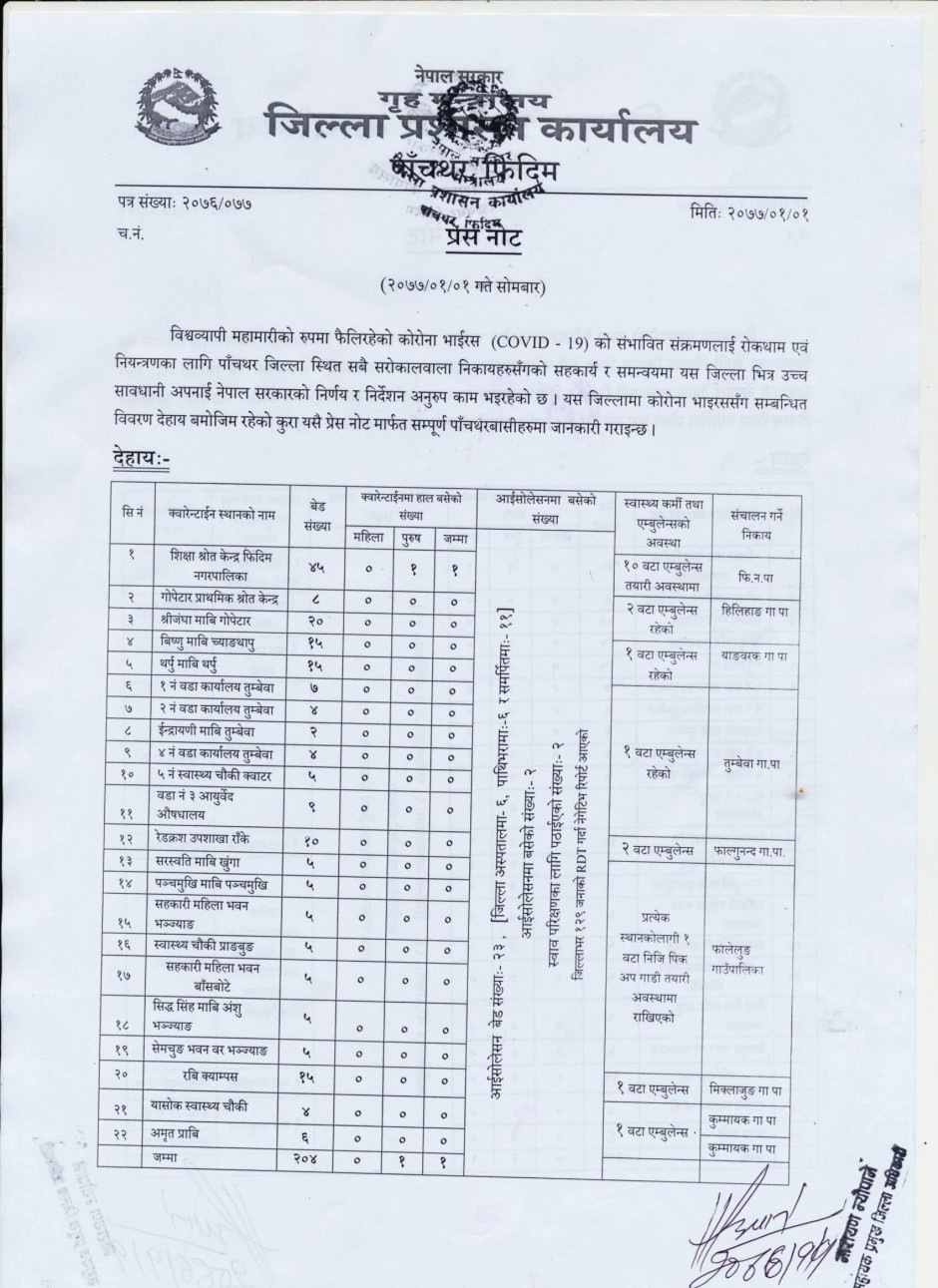 प्रेस नोट, मिति २०७७।०१।०१ सोमबार