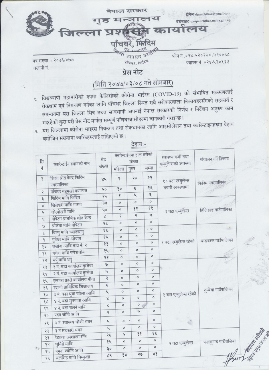 प्रेस नोट, मिति २०७७।०३।०८ सोमबार