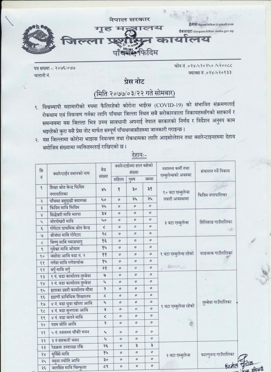प्रेस नोट, मिति २०७७।०३।२२ सोमबार