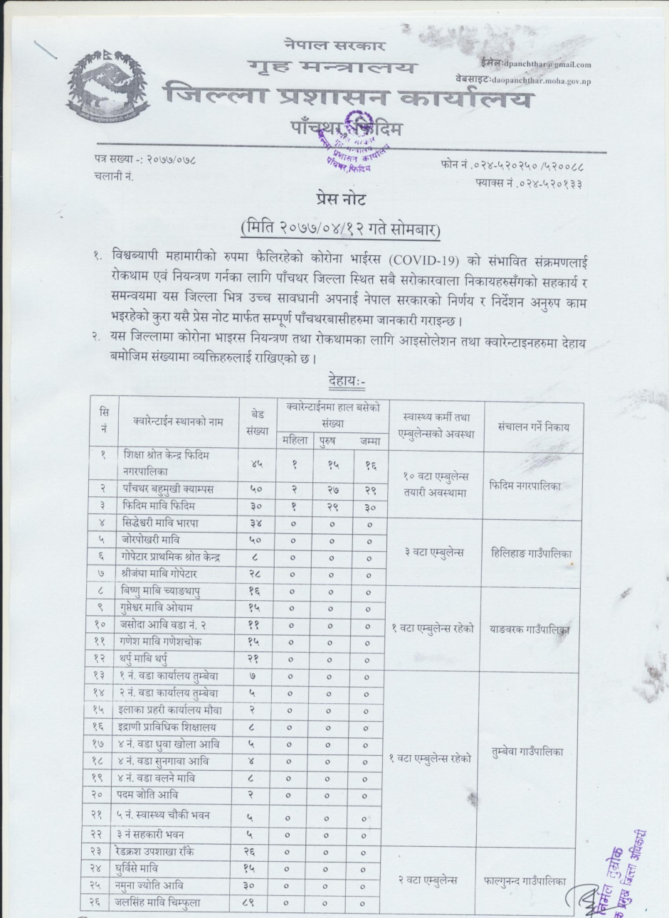 प्रेस नोट, मिति २०७७।०४।१२ सोमबार