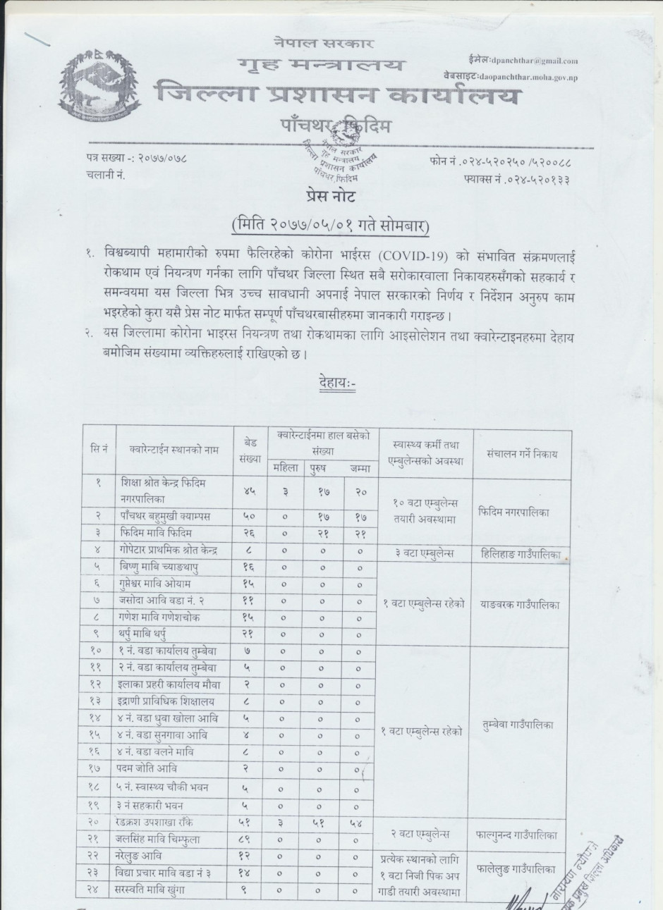 प्रेस नोट, मिति २०७७।०५।०१ सोमबार
