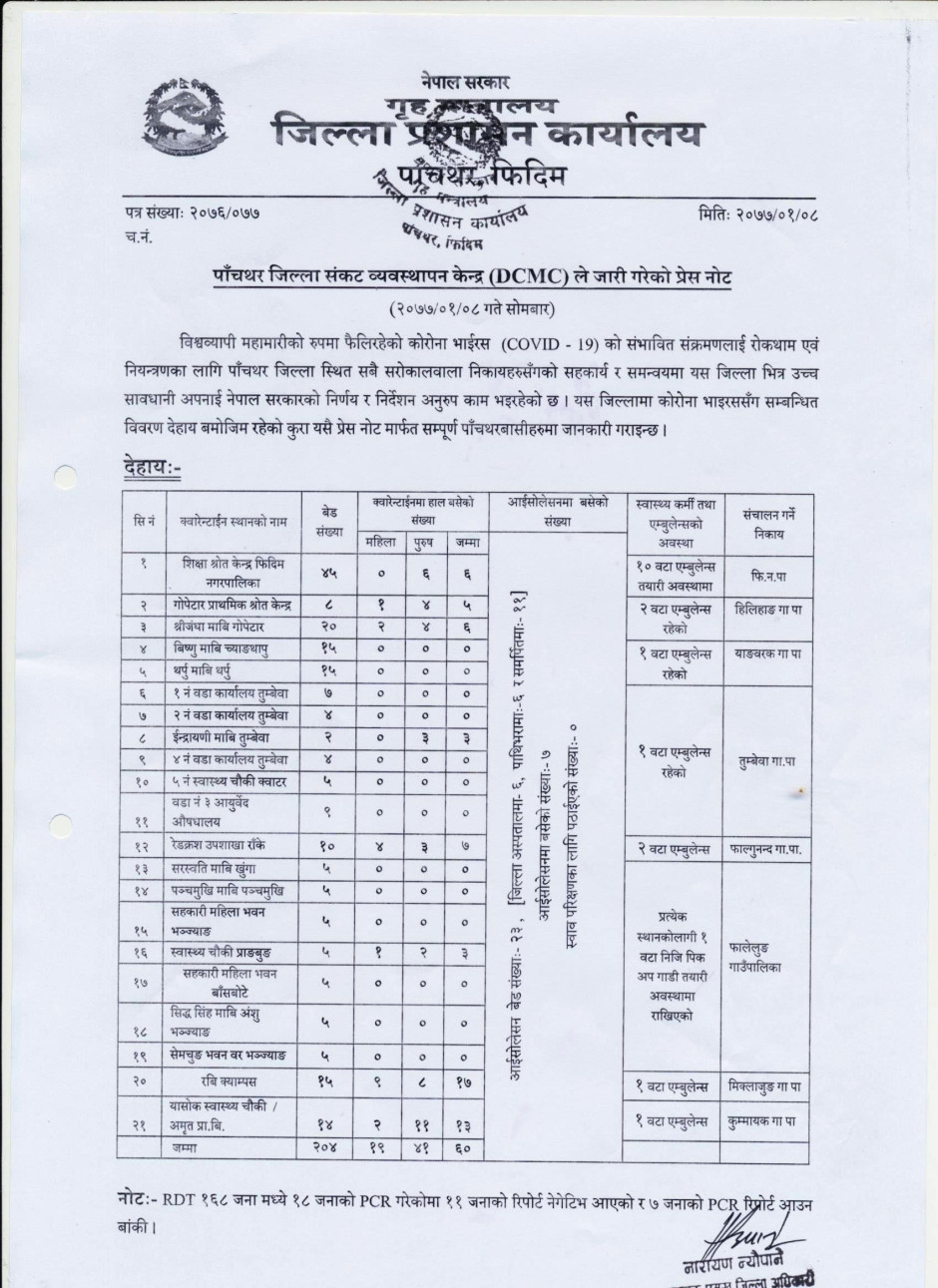 प्रेस नोट, मिति २०७७।०१।०८ सोमबार