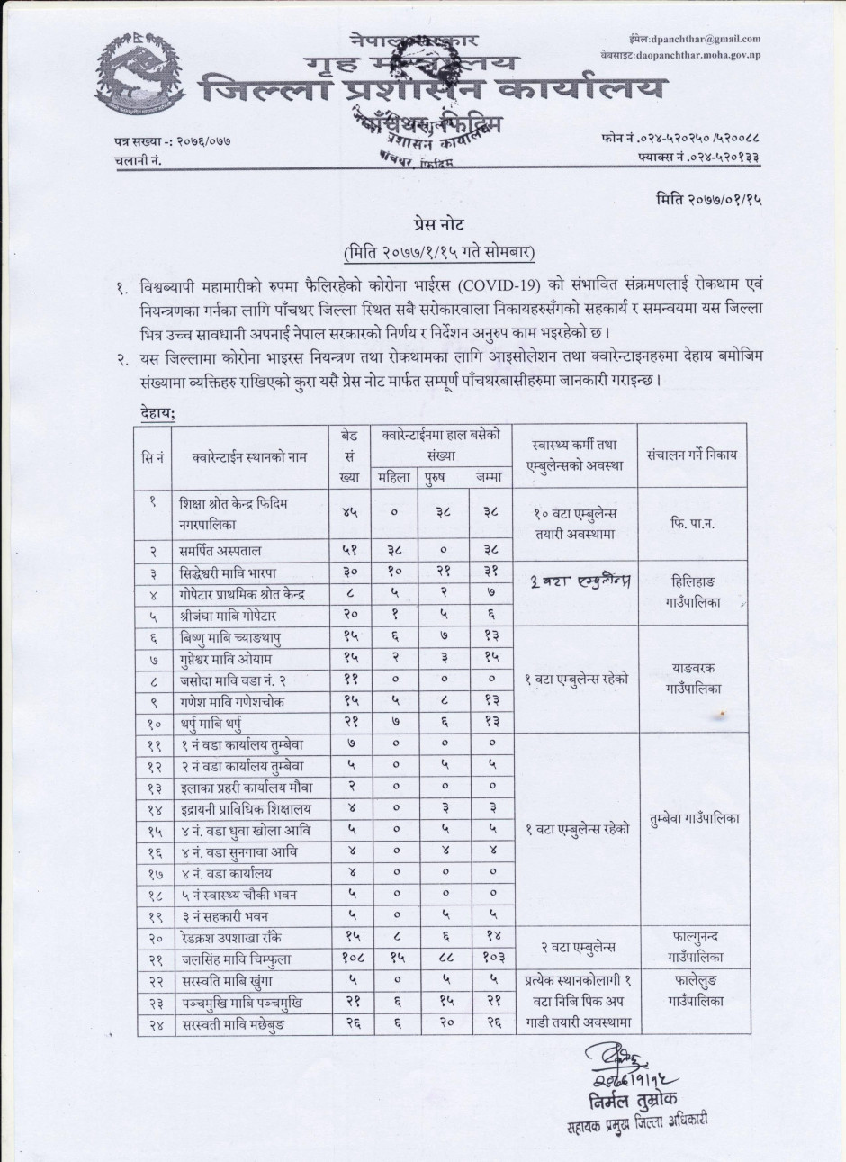 प्रेस नोट, मिति २०७७।०१।१५ सोमबार