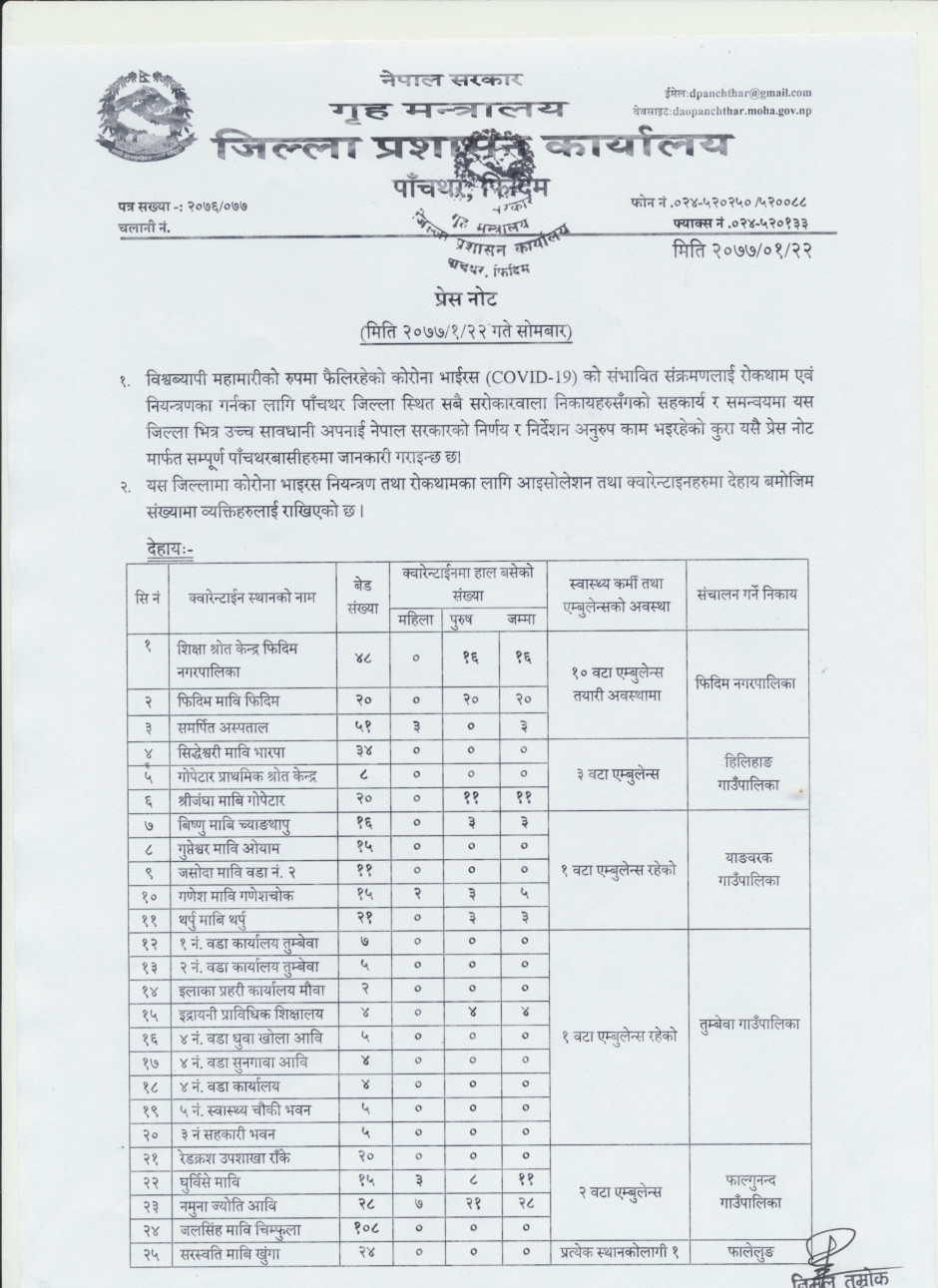प्रेस नोट, मिति २०७७।०१।२२ सोमबार