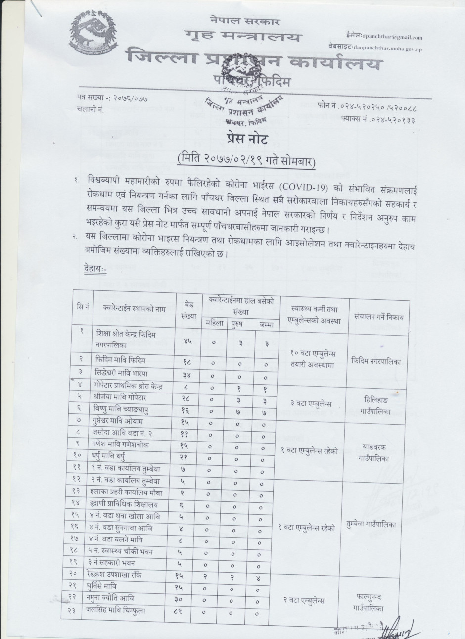 प्रेस नोट, मिति २०७७।०२।१९ सोमबार