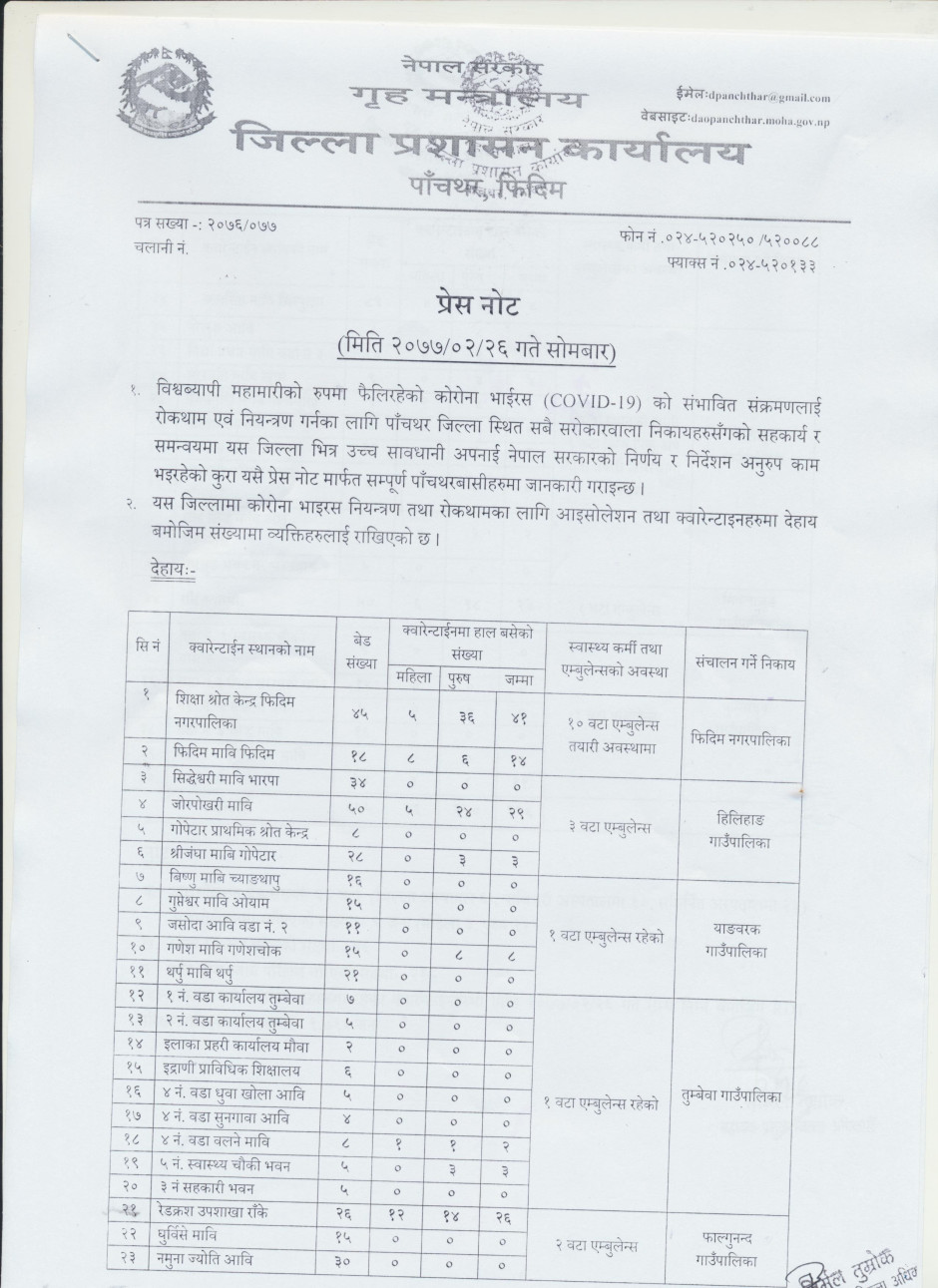 प्रेस नोट, मिति २०७७।०२।२६ सोमबार ।