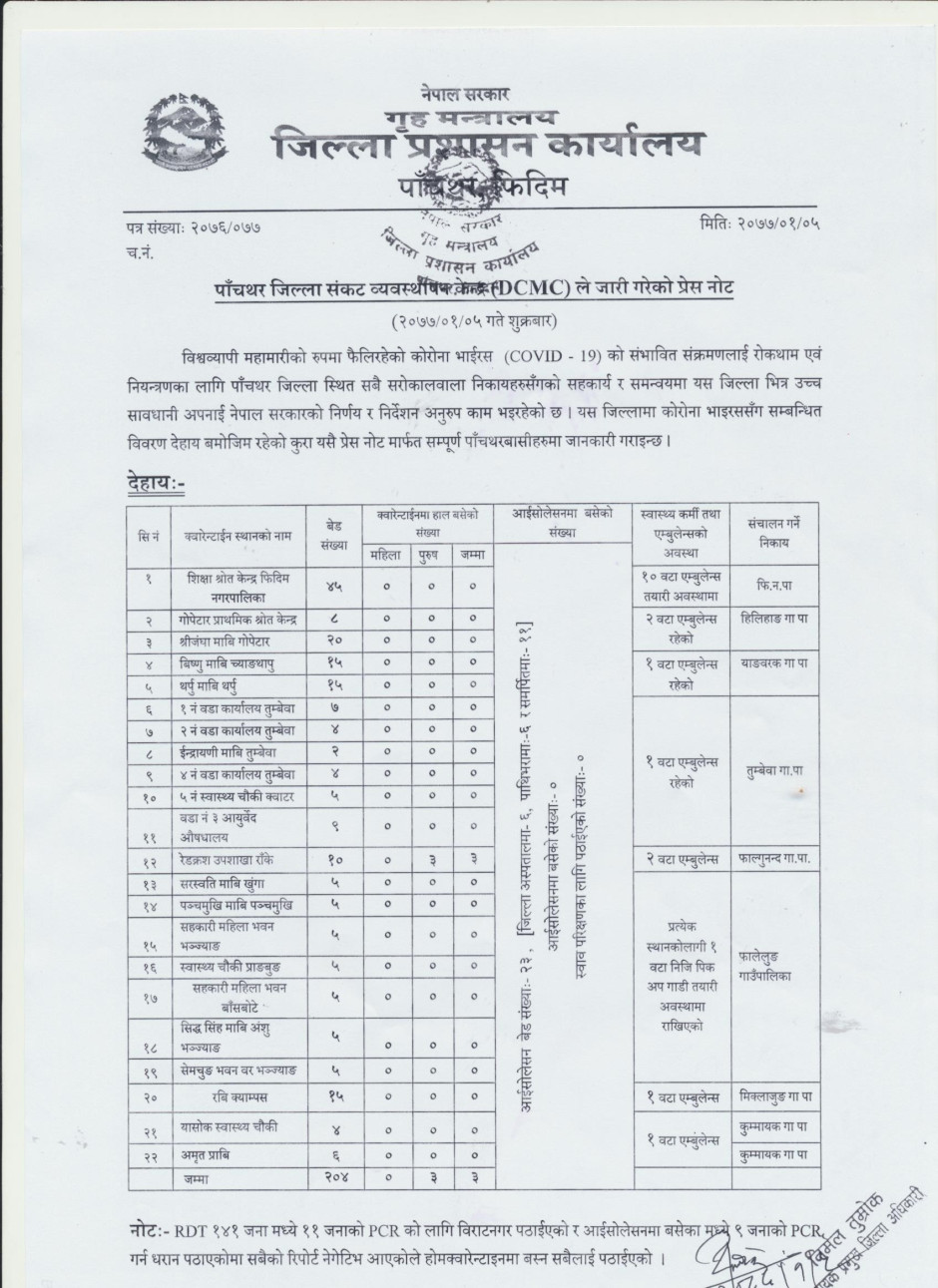 प्रेस नोट, मिति २०७७।०१।०५ शुक्रबार