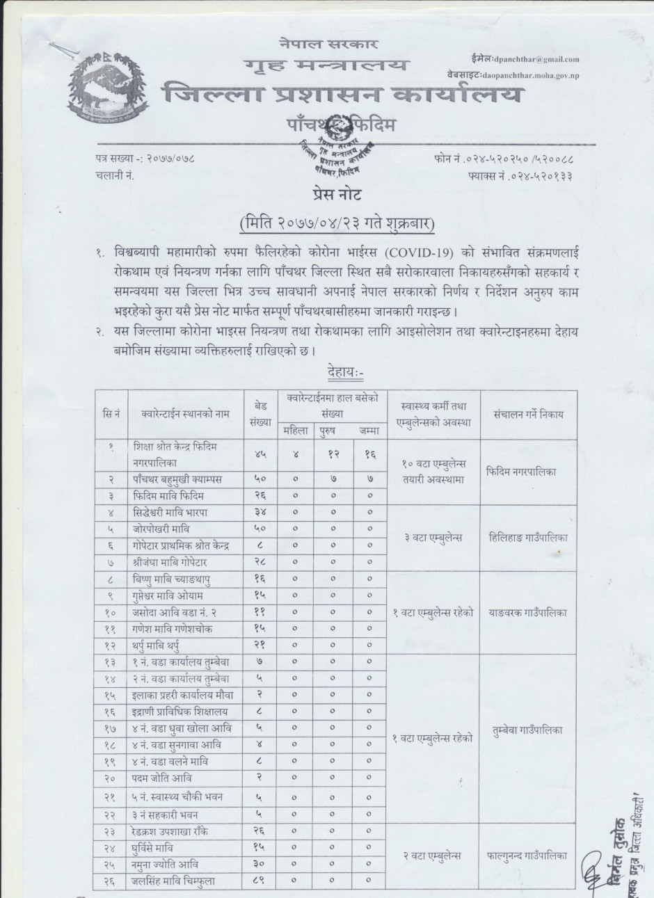 प्रेस नोट, मिति २०७७।०४।२३ शुक्रबार
