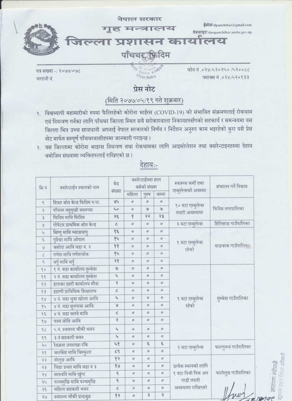 प्रेस नोट, मिति २०७७।०५।१९ शुक्रबार