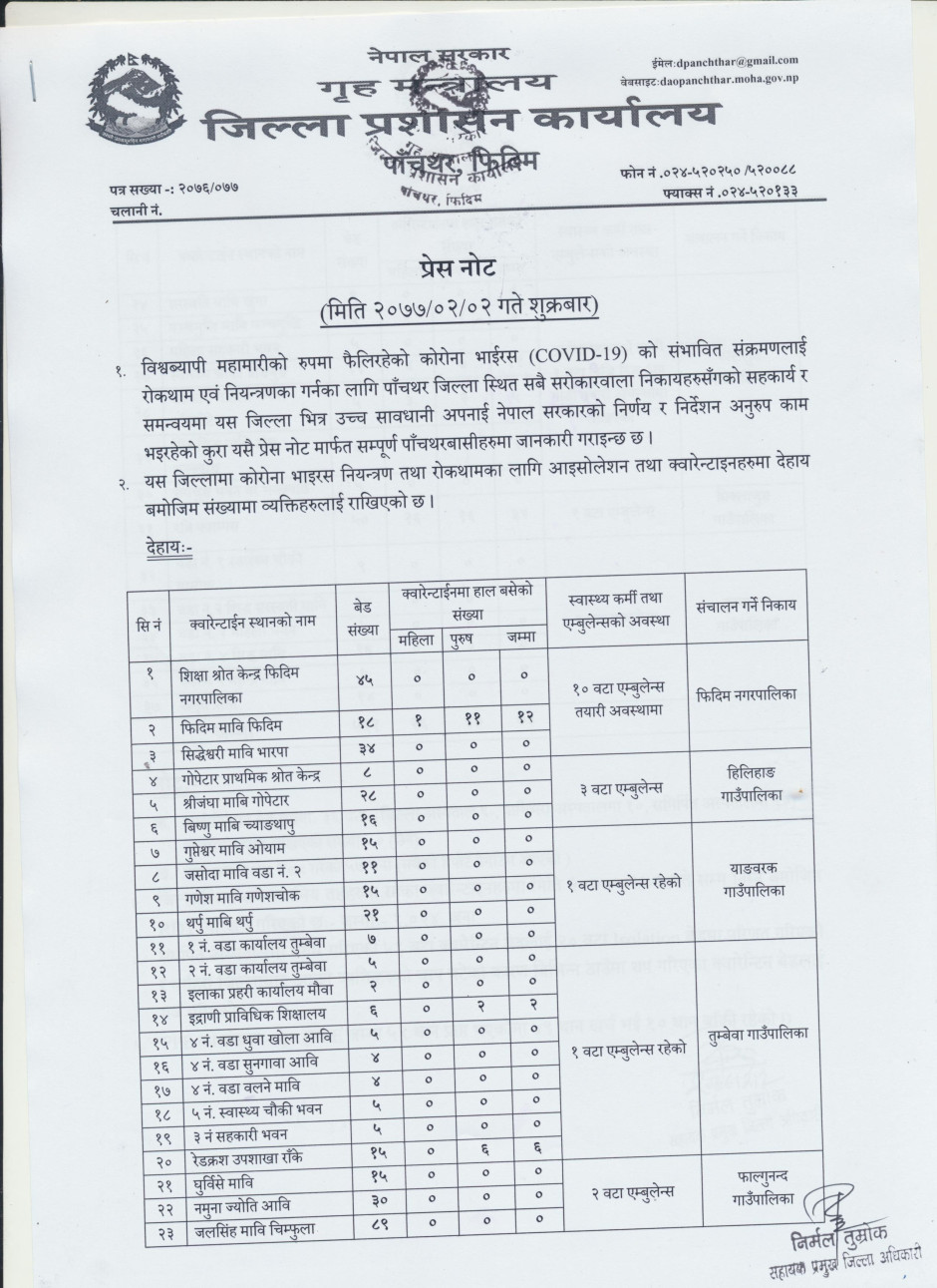प्रेस नोट, मिति २०७७।०२।०२ शुक्रबार