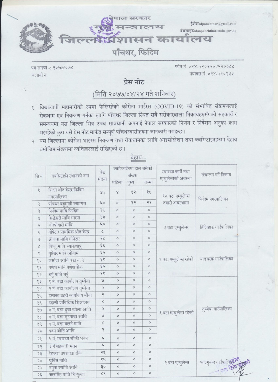 प्रेस नोट, मिति २०७७।०४।२४ शनिबार