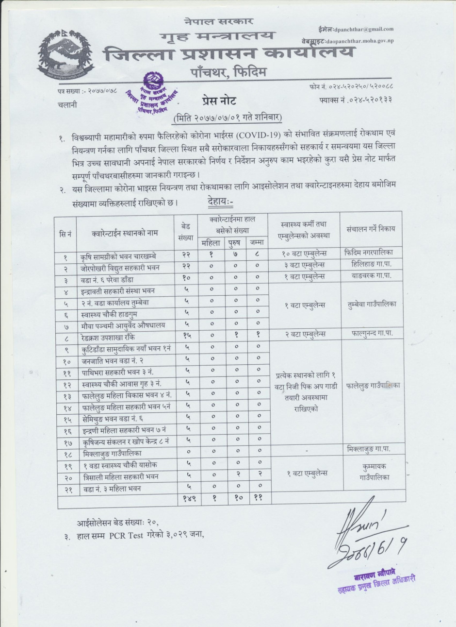 तस्बिर : प्रेस नोट, मिति २०७७।०७।०१ शनिबार।