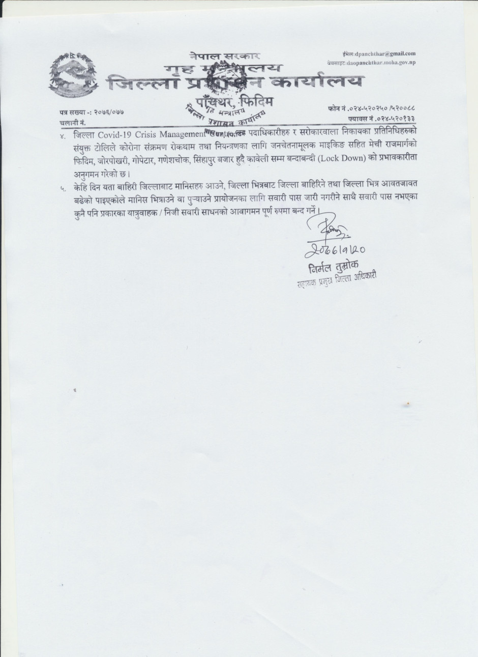 © सर्वाधिकार सुरक्षित जिल्ला प्रशासन कार्यालय, पाँचथर .