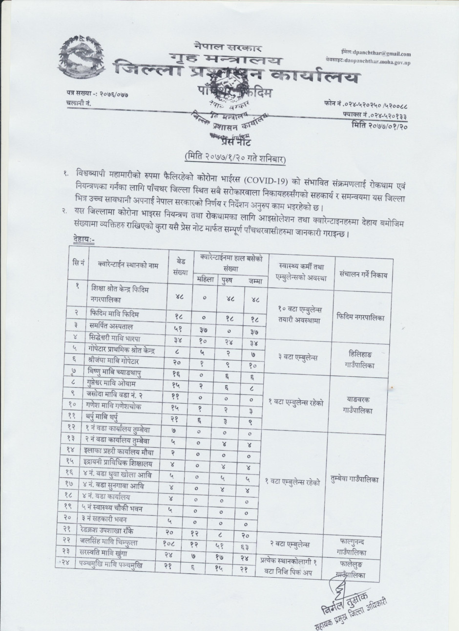 प्रेस नोट, मिति २०७७।०१।२० शनिबार