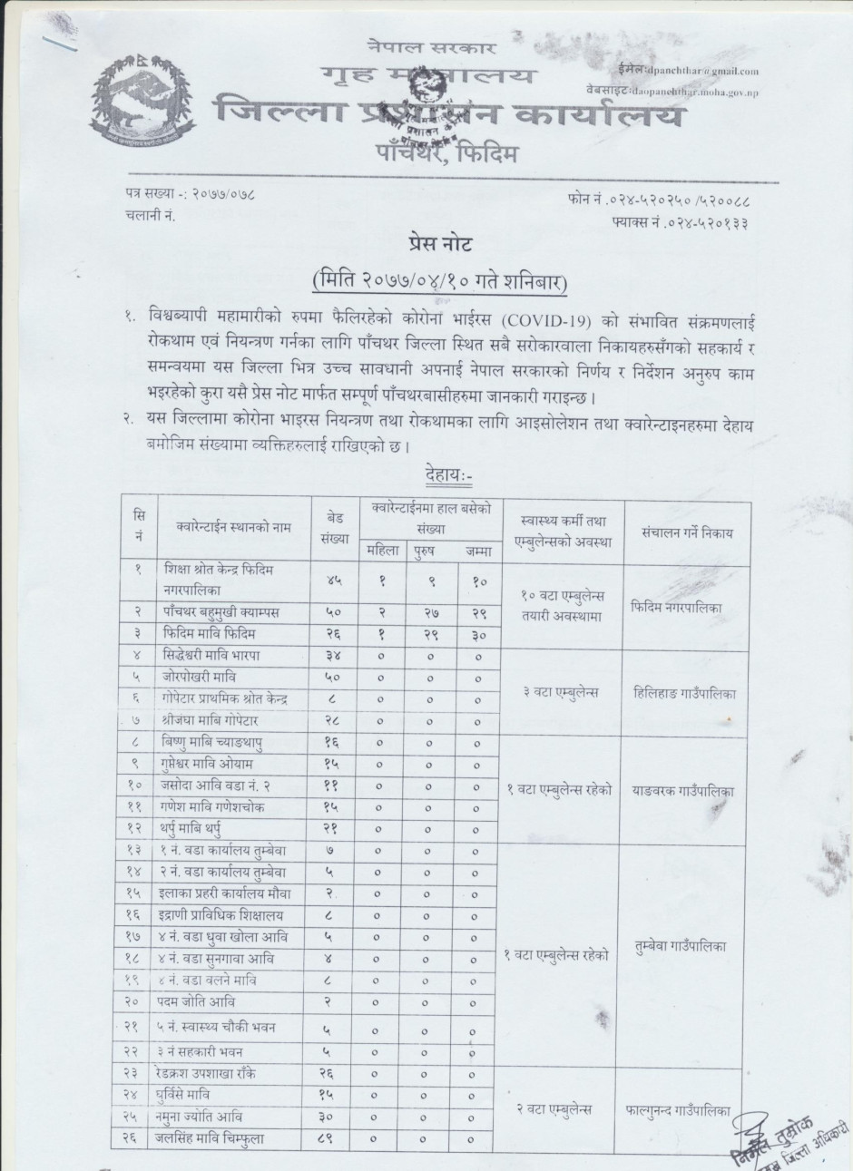 प्रेस नोट, मिति २०७७।०४।१० शनिबार