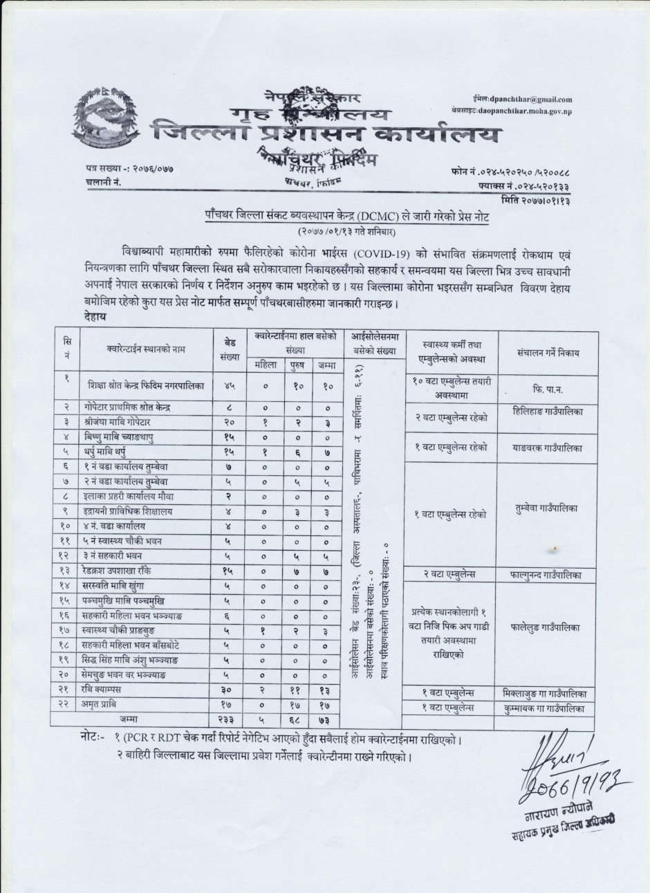 प्रेस नोट, मिति २०७७।०१।१३ शनिवार