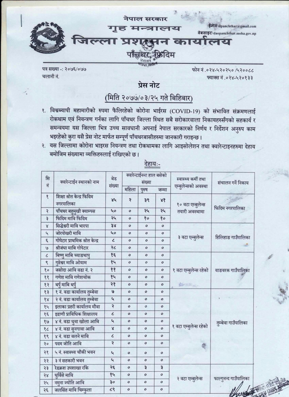 प्रेस नोट, मिति २०७७।०३।२५ विहिबार