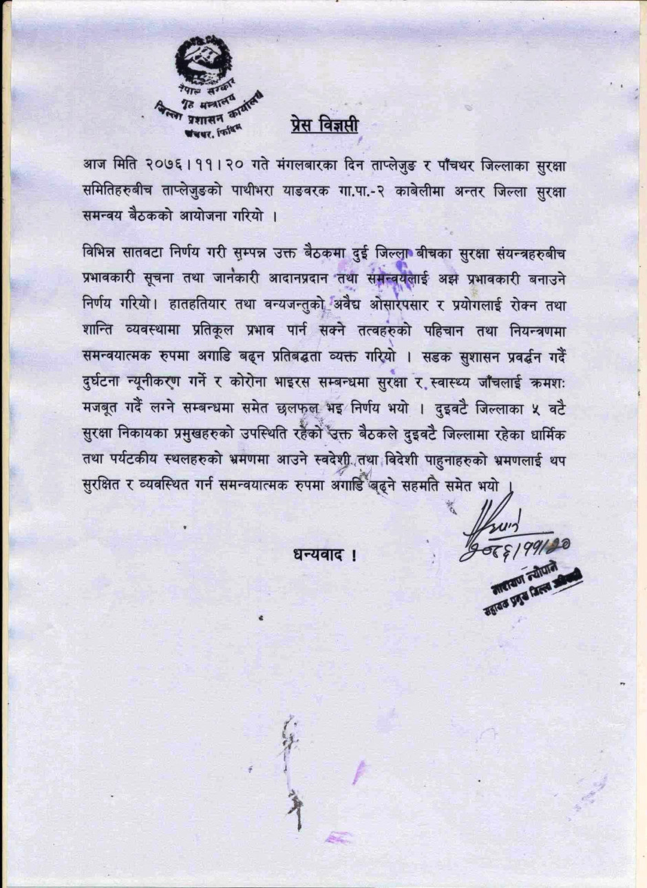 अर्धवार्षिक बुलेटिन २०७६, जिल्ला प्रशासन कार्यालय, पाँचथर
