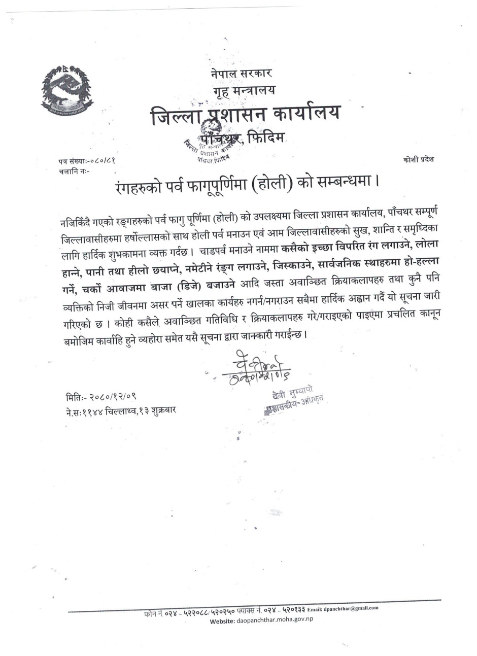 रंगहरुको पर्व फागूपूर्णिमा (होली) को सम्बन्धमा ।