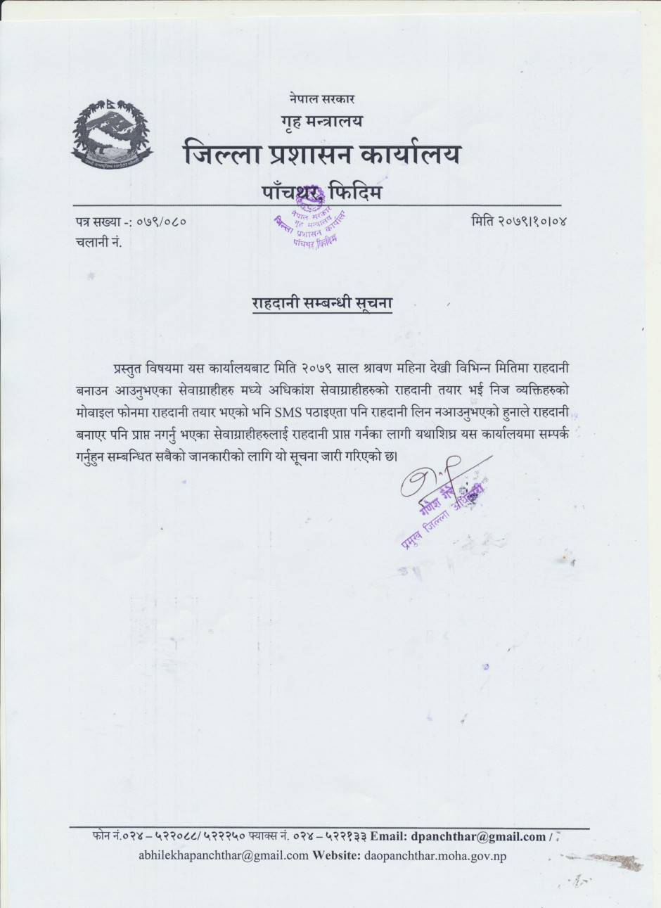 © सर्वाधिकार सुरक्षित जिल्ला प्रशासन कार्यालय, पाँचथर .