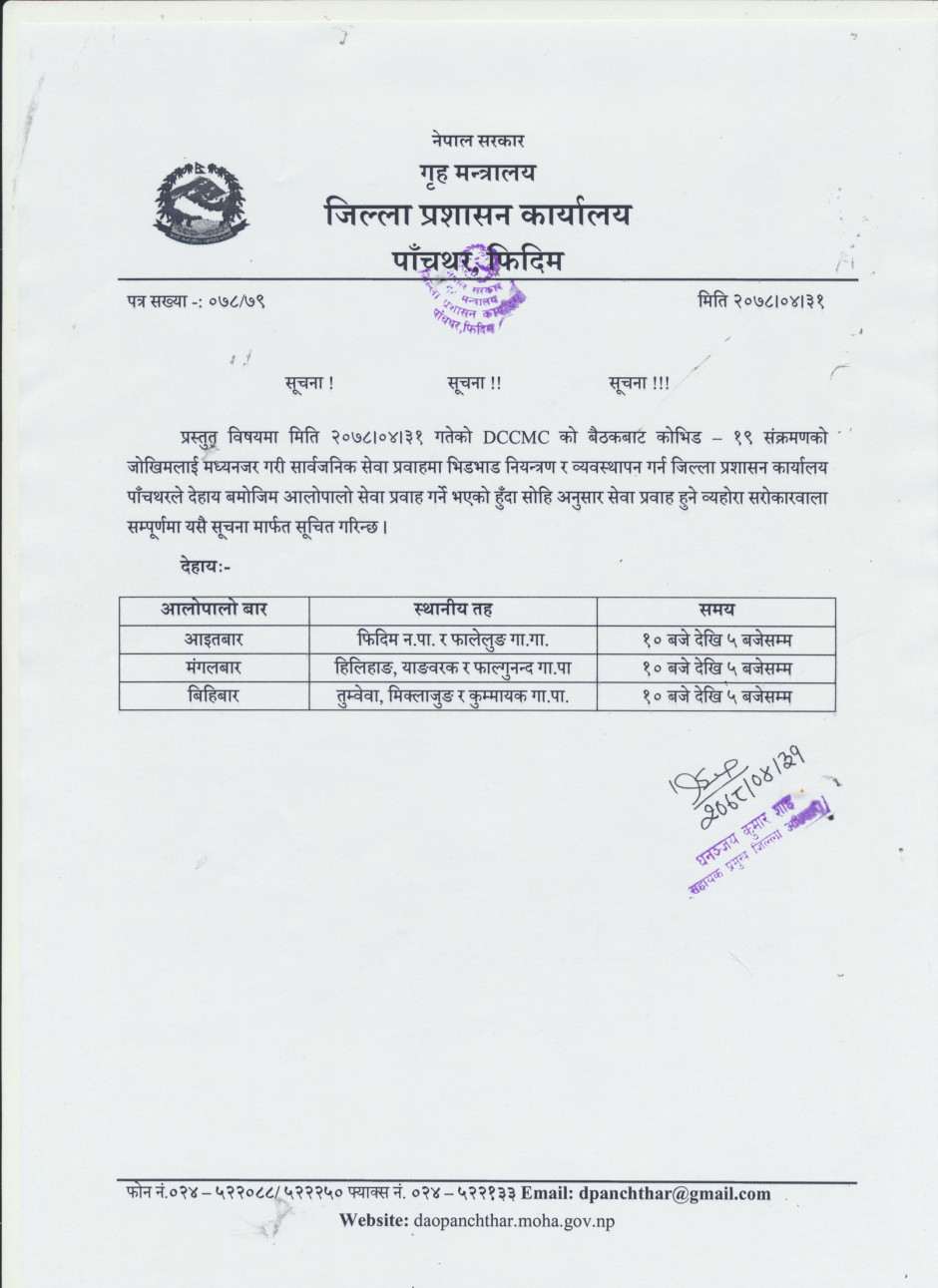 अर्धवार्षिक बुलेटिन २०७६, जिल्ला प्रशासन कार्यालय, पाँचथर