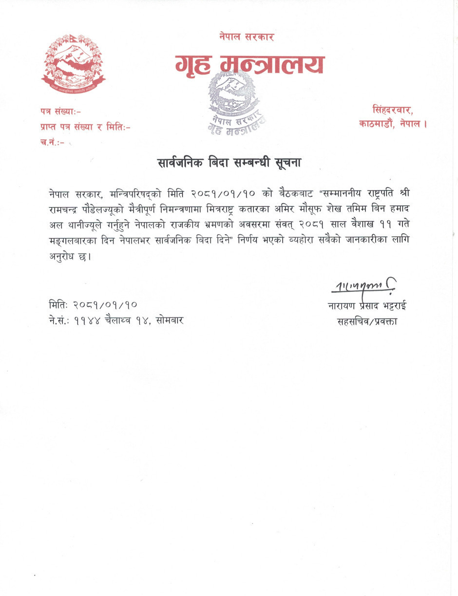 सार्वजनिक बिदा सम्बन्धी सूचना