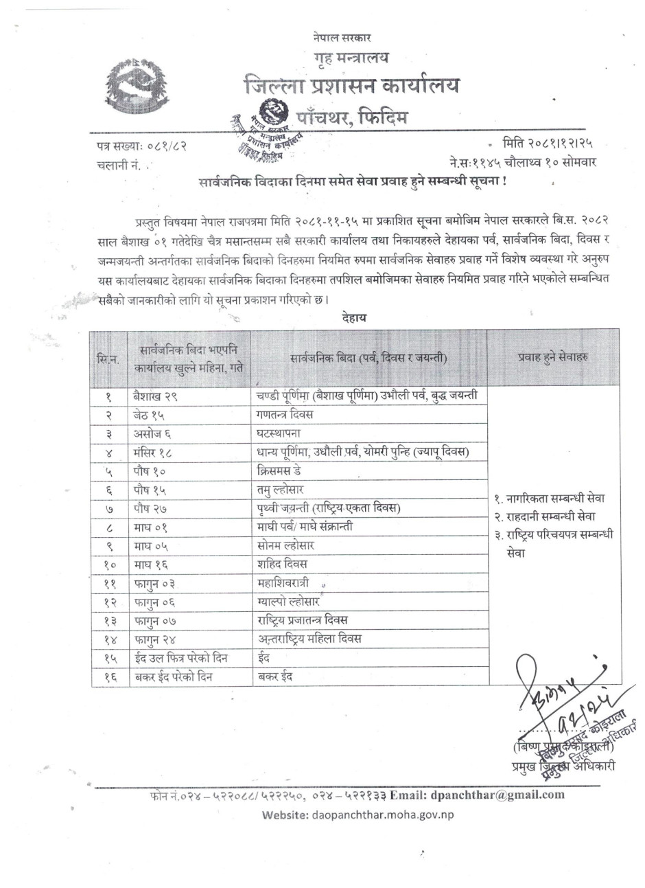 सार्वजनिक विदाका दिनमा समेत सेवा प्रवाह हुने सम्बन्धी सूचना !