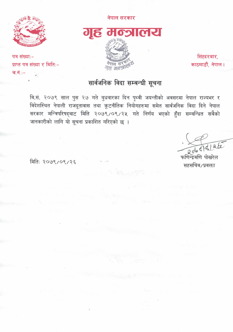 सार्वजनिक विदाका दिनमा समेत सेवा प्रवाह हुने सम्बन्धी सूचना !