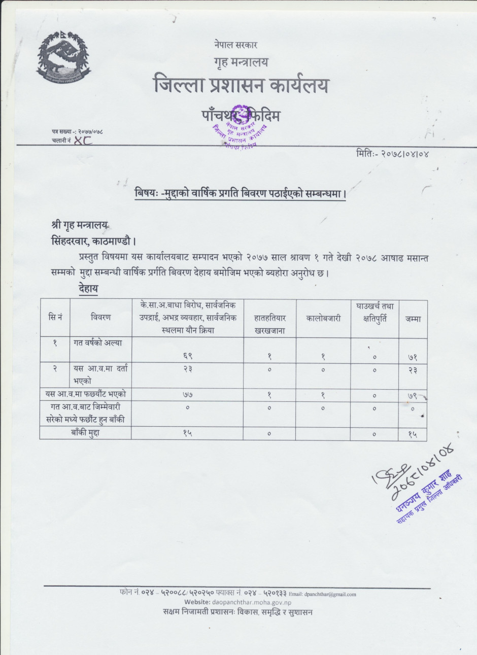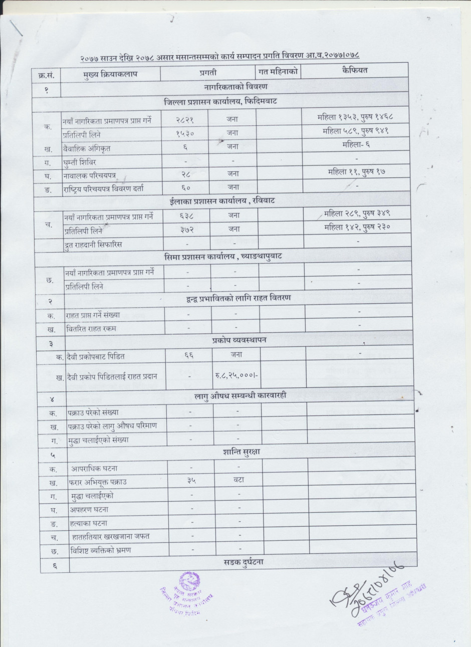 तस्बिर : २०७७ साउन १ देखि २०७८ असार मसान्तसम्मको कार्यसम्पादन प्रतिवेदन ।