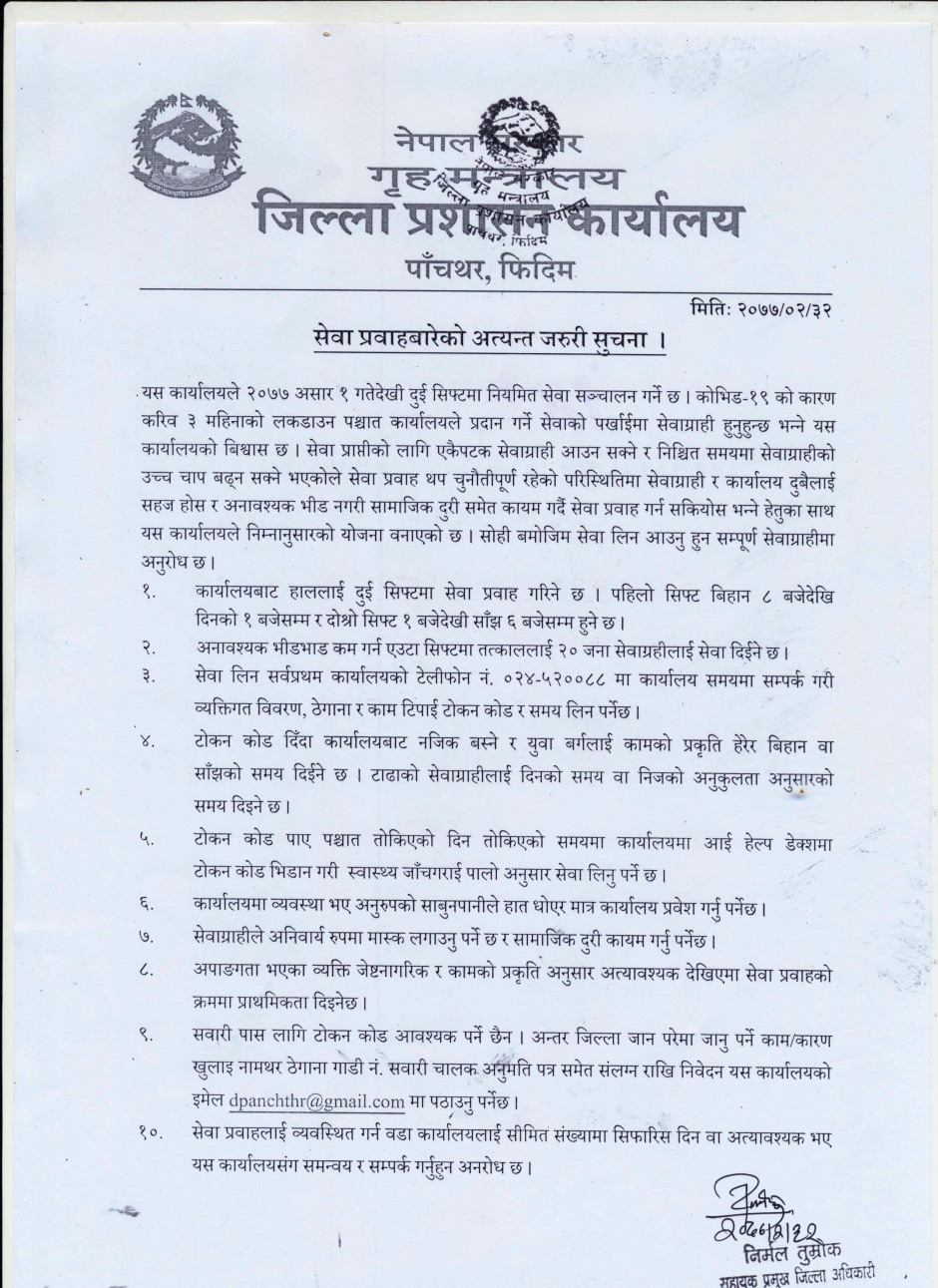 सेवा प्रवाहबारेको अत्यन्त जरूरी सूचना