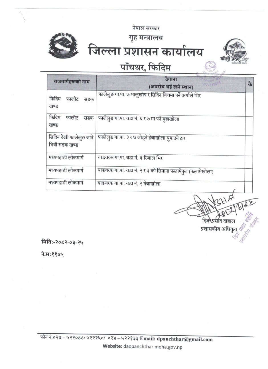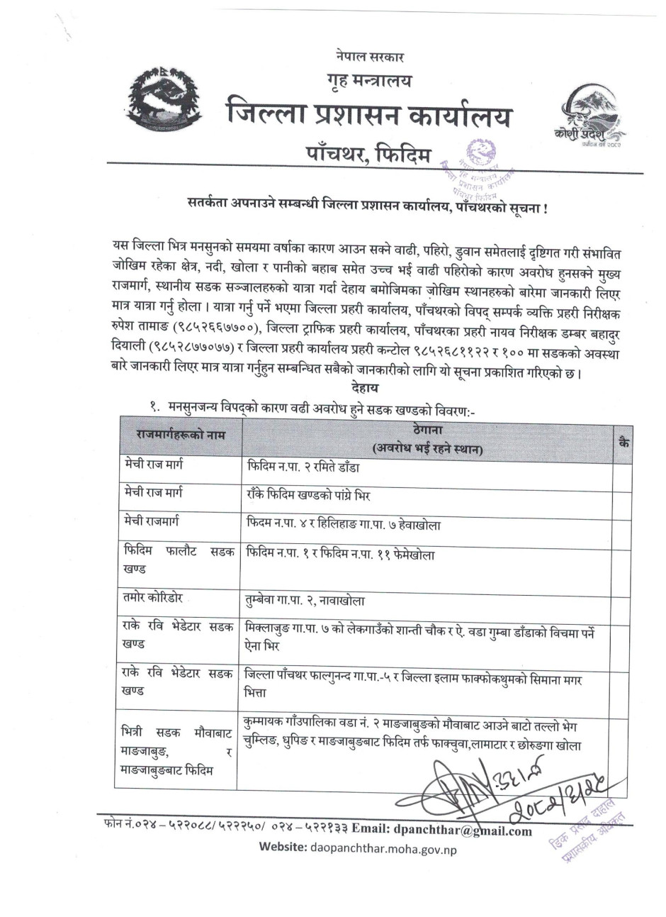 सतर्कता अपनाउने सम्बन्धी जिल्ला प्रशासन कार्यालय, पाँचथरको सूचना !