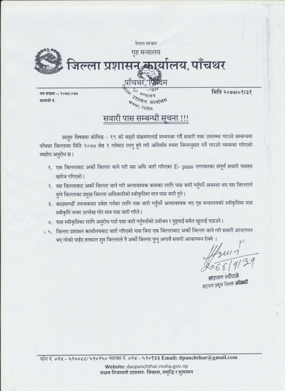 जिल्ला प्रशासन कार्यालय, पाँचथरको सूचनाको हक सम्बन्धी त्रैमासिक प्रकासन । (२०७७ बैशाख १ देखि असार मसन्तसम्म)
