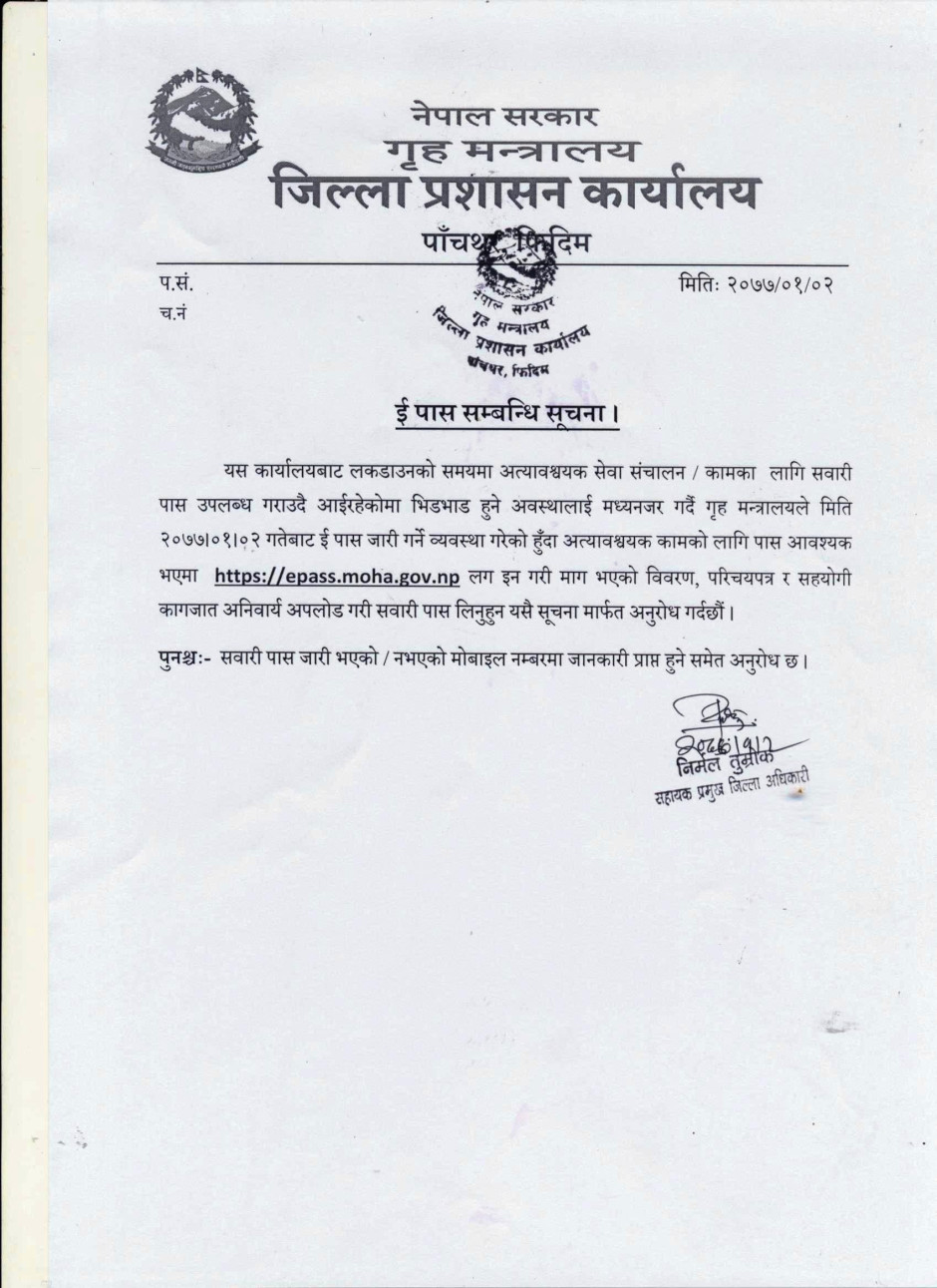 अर्धवार्षिक बुलेटिन २०७६, जिल्ला प्रशासन कार्यालय, पाँचथर