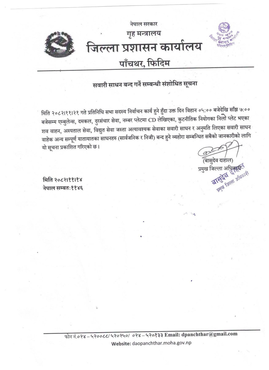 तस्बिर : सवारी साधन बन्द गर्ने सम्बन्धी संशोधित सूचना