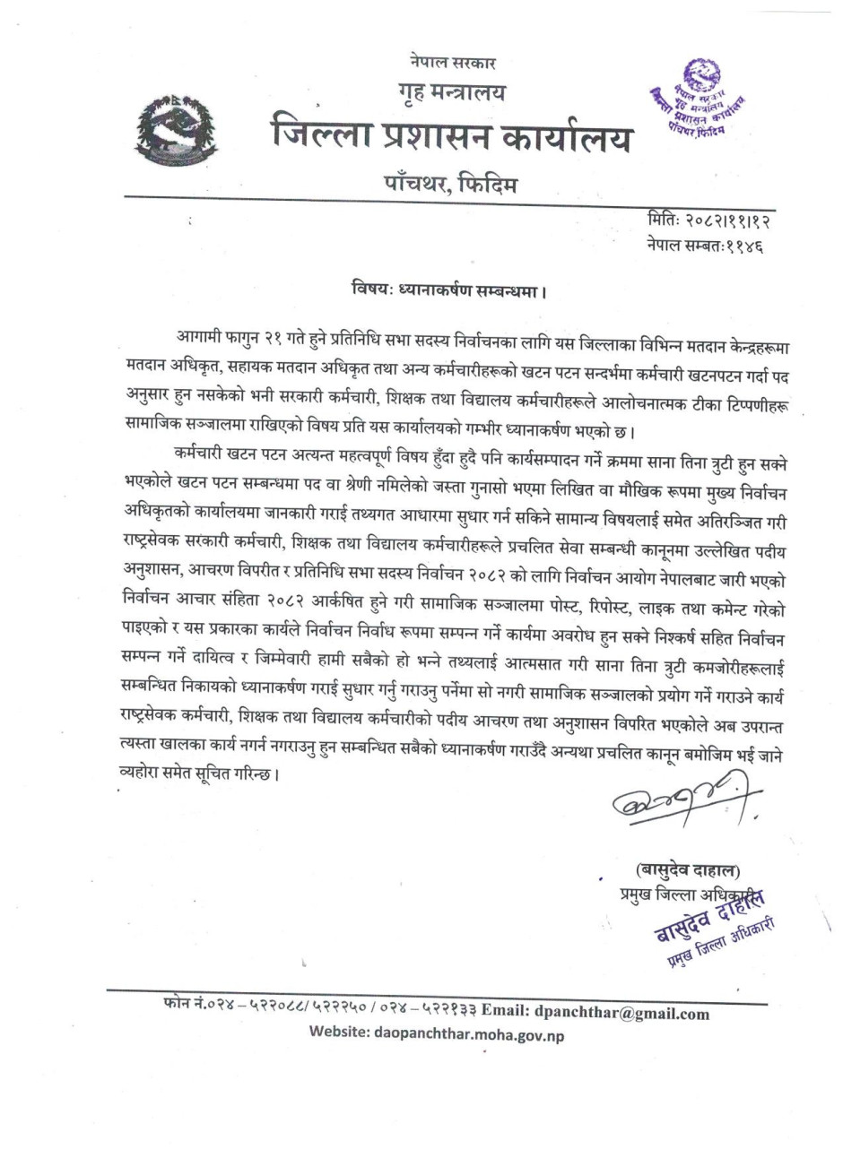 © सर्वाधिकार सुरक्षित जिल्ला प्रशासन कार्यालय, पाँचथर .