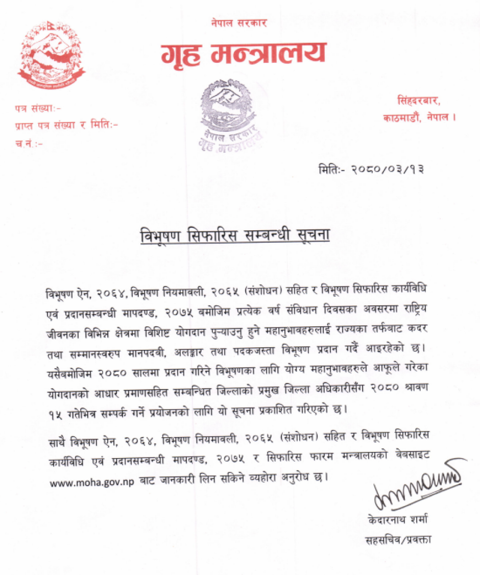 विभुषण सिफारिस सम्बन्धी सूचना
