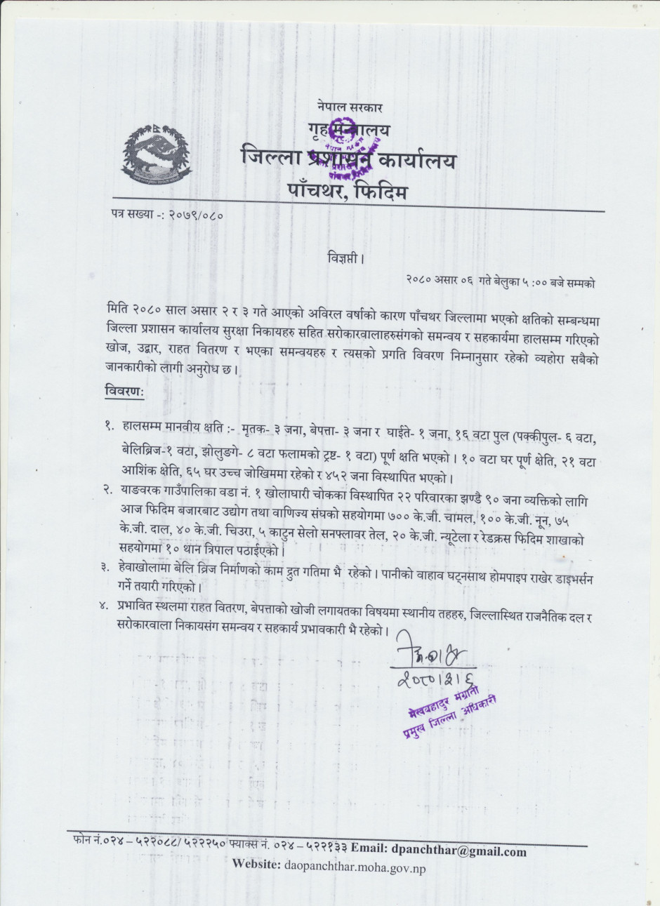 विपद्बाट भएको क्षतिको विवरण सम्बन्धि विज्ञप्ती ।